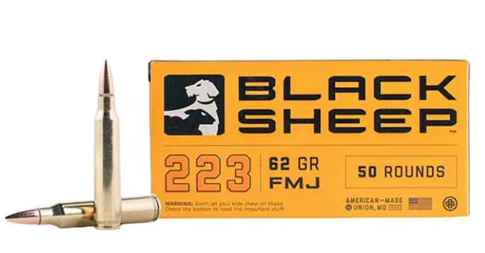![]() | Black Sheep 62gr .223 $12 Box of 20 $500 case of 1,000 (Pre-order only) |